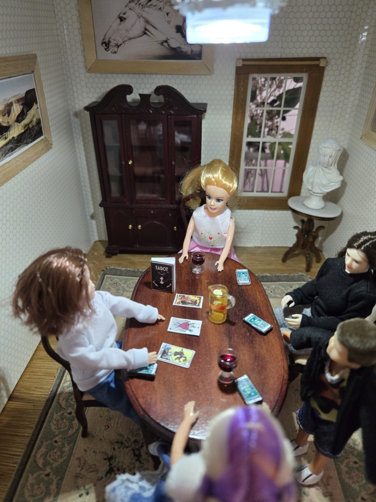 Tarot Card Reader: The Queen of Pentacles represents abundance and serenity. The fool is telling you to embrace the unknown. But the three of swords piercing a heart? That’s not good…